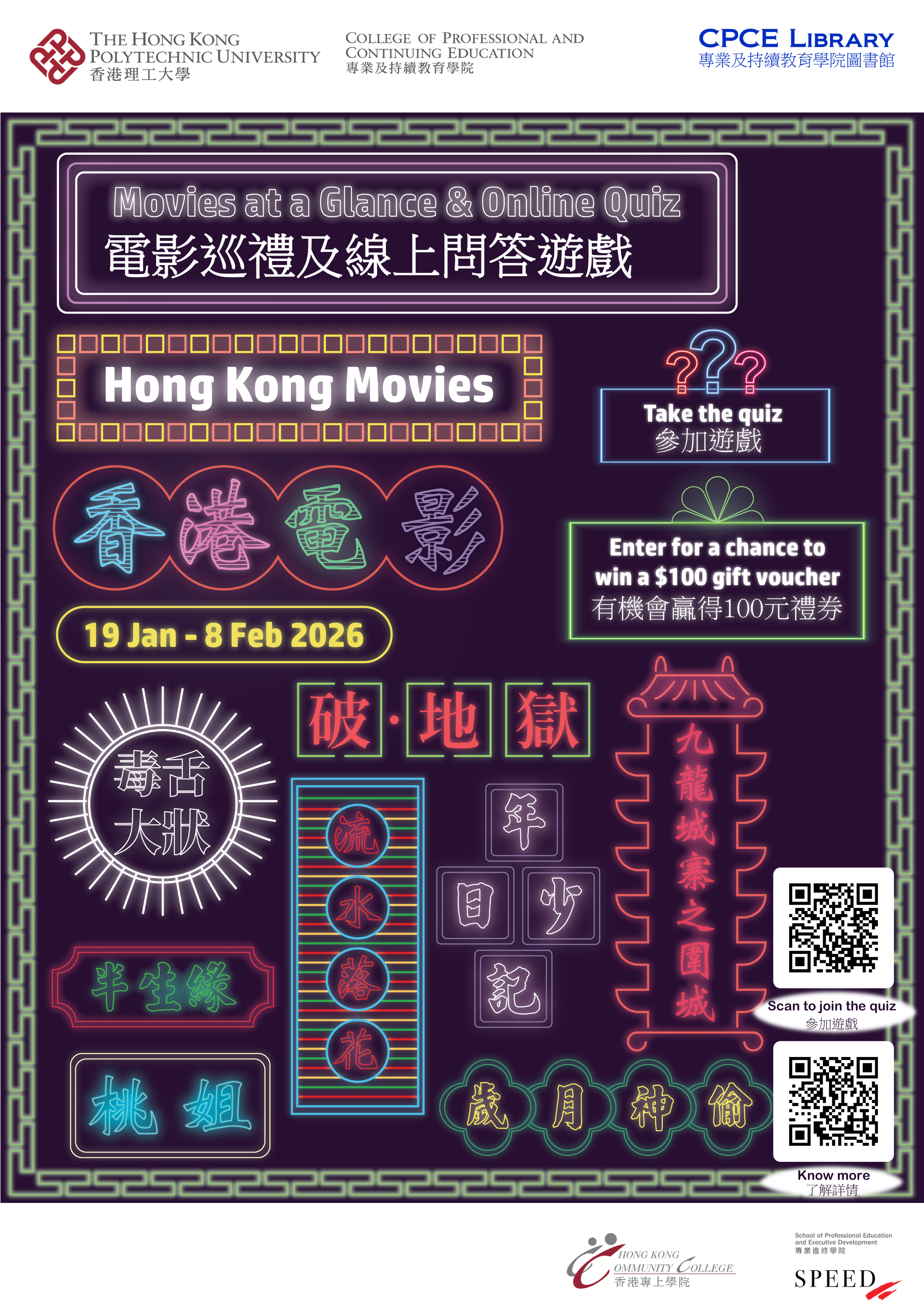 | 19 Jan - 8 Feb 26 | Movies at a Glance & Online Quiz : Hong Kong Movies ![]() 電影巡禮及線上問答遊戲:香港電影 |