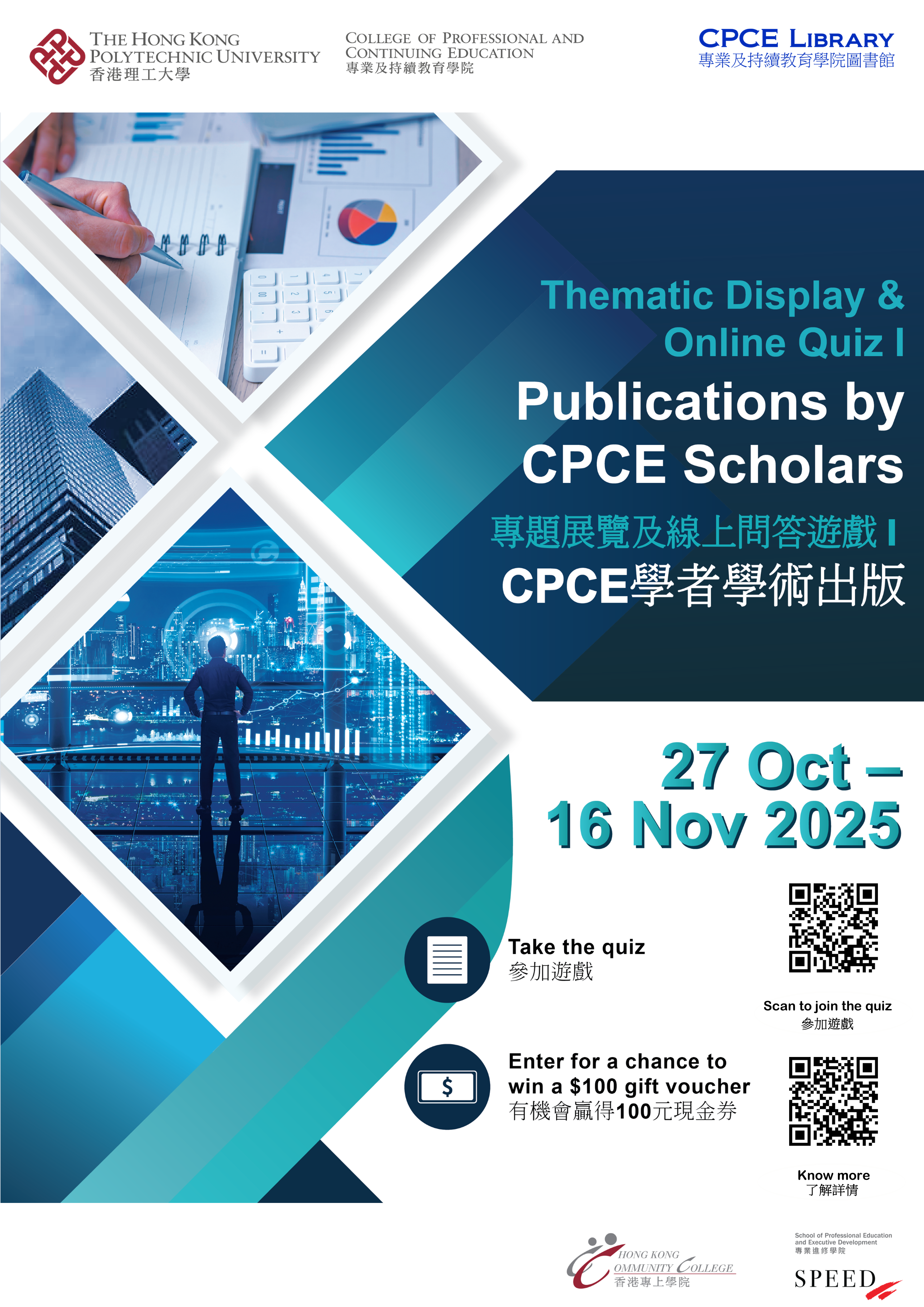 | 27 Oct - 16 Nov 25 | Thematic Display & Online Quiz I : Publications by CPCE Scholars ![]() 專題展覽及線上問答遊戲 I:CPCE學者學術出版 |